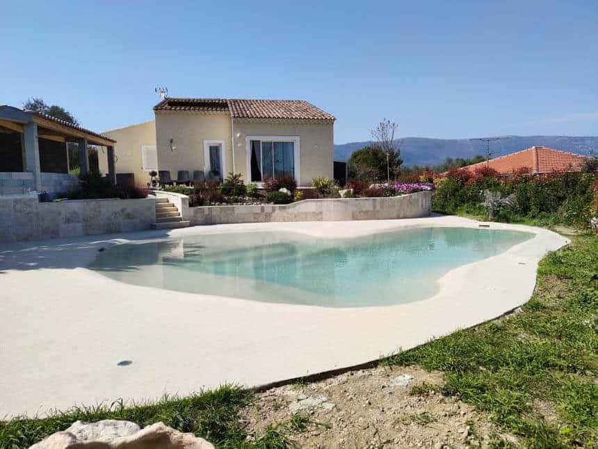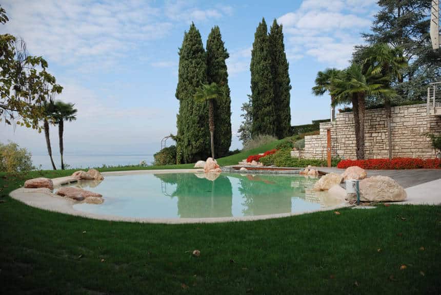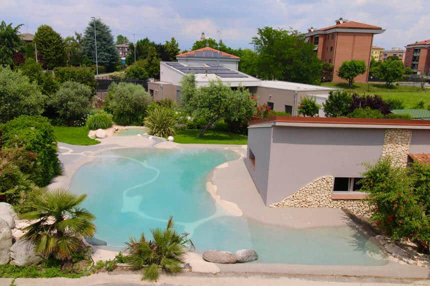Naturi pools combine Italian artistry with breakthrough engineering. These aren’t conventional pools with painted finishes—they’re hand-sculpted natural environments with beach entries, customizable sand terrains, and water that flows through the permeable surface itself.